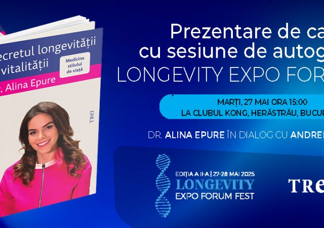 Pe 27 mai 2025, la ora 15:00, în cadrul Longevity Expo Forum Fest 2025, Dr. Alina Epure va prezenta volumul său „Secretul longevității și vitalității, o carte esențială pentru toți cei interesați de medicina stilului de viață și strategiile pentru…