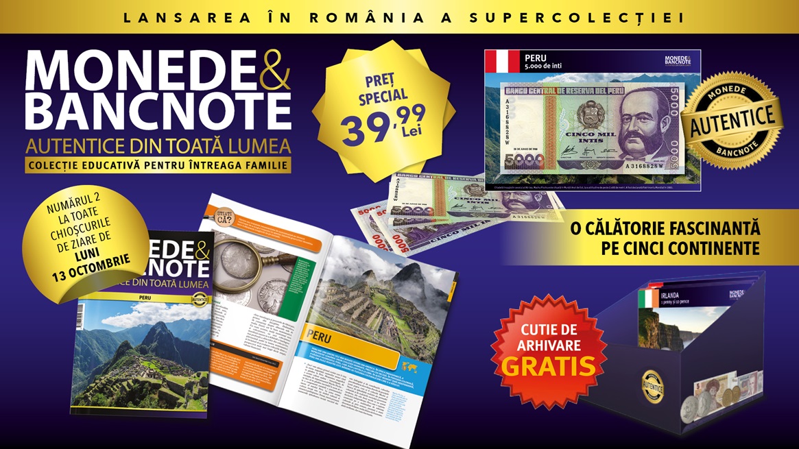Începând de luni, 13 octombrie, colecția „Monede și bancnote autentice din întreaga lume” lansează un nou număr, care include bancnota de 5000 de inti din Peru, o piesă care nu mai este în circulație, dar care are o valoare considerabilă pentru colecționari.