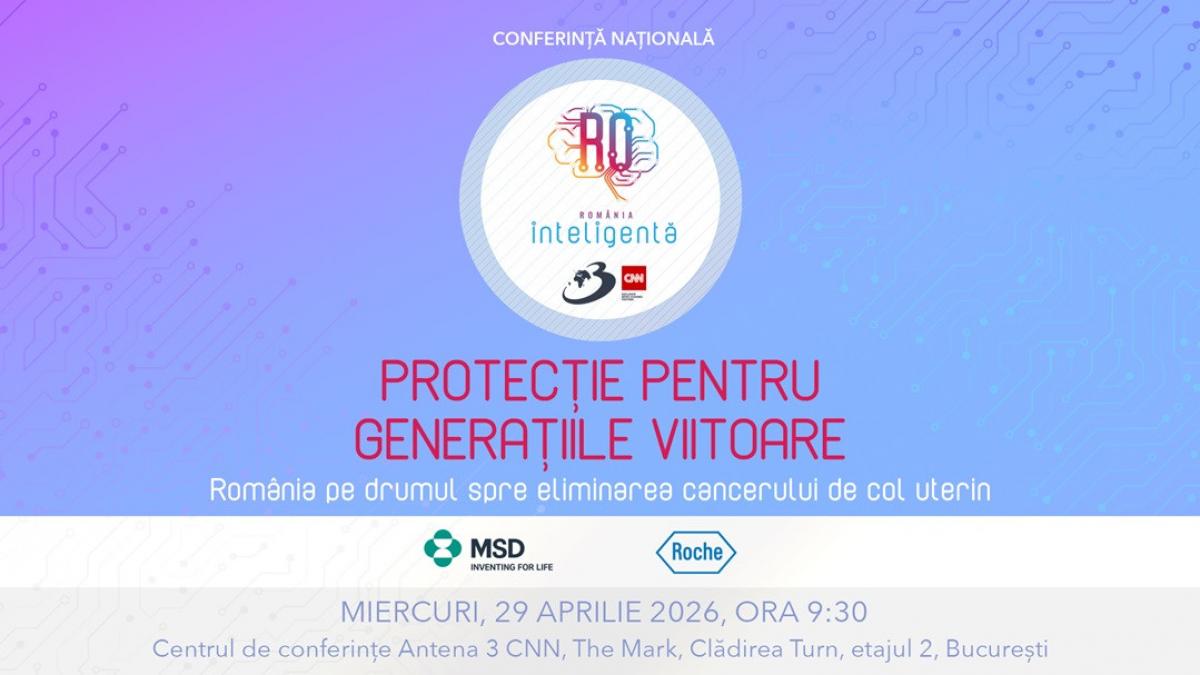 Conferința Națională România Inteligentă „PROTECȚIE PENTRU GENERAȚIILE VIITOARE – ROMÂNIA PE DRUMUL SPRE ELIMINAREA CANCERULUI DE COL UTERIN”, va avea loc miercuri, 29 aprilie 2026, începând cu ora 09:30, la Centrul de Conferințe Antena 3 CNN, “The Mark”, Clădirea Turn, etaj 2, Calea Griviței nr. 84-98, sector 1, București. Evenimentul va fi moderat de Mihaela Tănase, expert în comunicare politici de sănătate, și Adrian Ursu, jurnalist Antena 3 CNN.