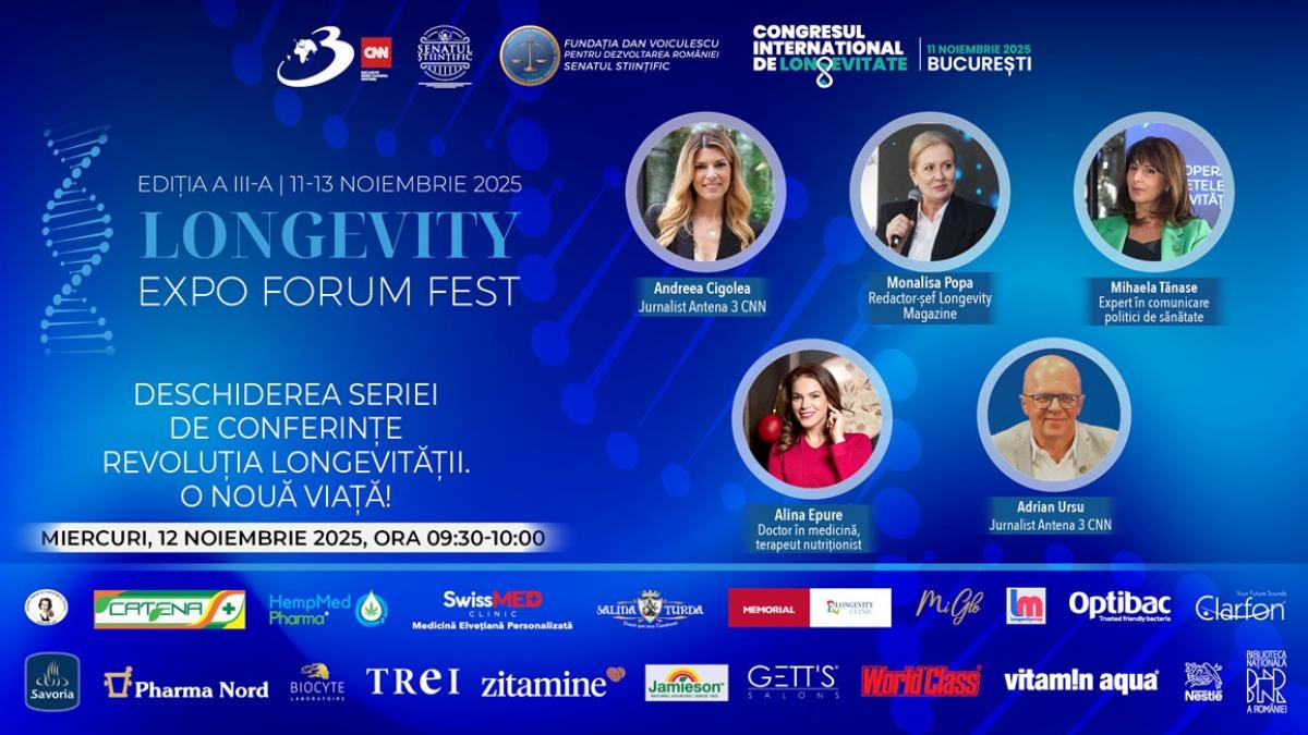 Longevitatea nu mai este un subiect rezervat viitorului — este o realitate care se construiește acum, prin educație, știință și dialog responsabil. La Biblioteca Națională a României, între 11 și 13 noiembrie, are loc Longevity Expo Forum Fest, ediția a III-a, cel mai amplu eveniment din România dedicat medicinei regenerative, sănătății viitorului și inovației în wellbeing.
