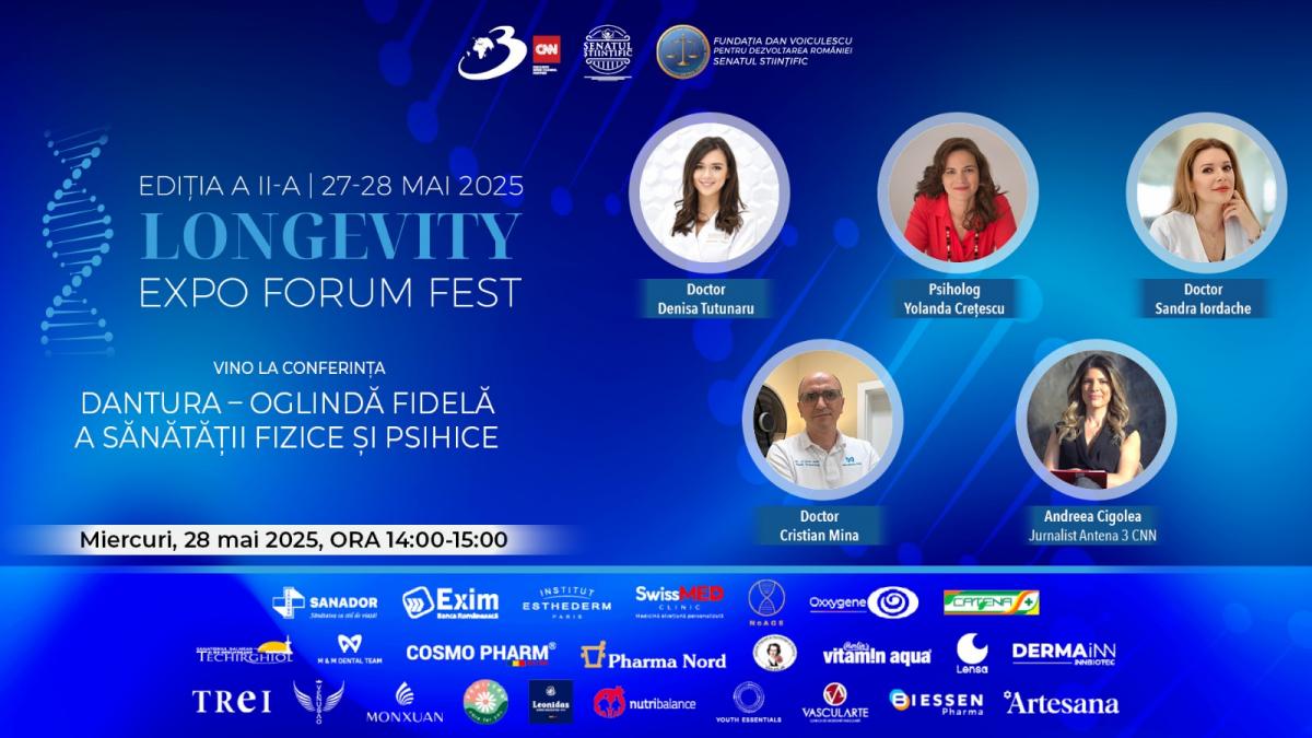 În cadrul Longevity Expo Forum Fest 2025, conferința „Dantura – oglinda fidelă a sănătății fizice și psihice”, programată pe 28 mai între 14:00 și 15:00, propune un dialog interdisciplinar despre conexiunea dintre sănătatea orală, echilibrul psihologic și estetica facială. Moderată de jurnalista Andreea Cigolea, realizator „Sfat de Sănătate”, Antena 3 CNN, recent premiată cu distincția „Lifestyle Medicine Pioneer” pentru contribuția sa excepțională la promovarea unui stil de viață sănătos, conferința reunește specialiști din domenii complementare, care vor analiza importanța îngrijirii dentare și impactul său asupra sănătății generale.