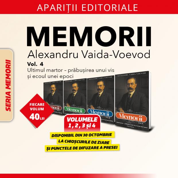 După trei volume care au surprins formarea idealului național, lupta diplomatică de la Paris și tensiunile puterii interbelice, cel de-al patrulea și ultimul volum din „Memoriile lui Alexandru Vaida-Voevod” încheie o mărturie istorică esențială despre destinul României moderne.