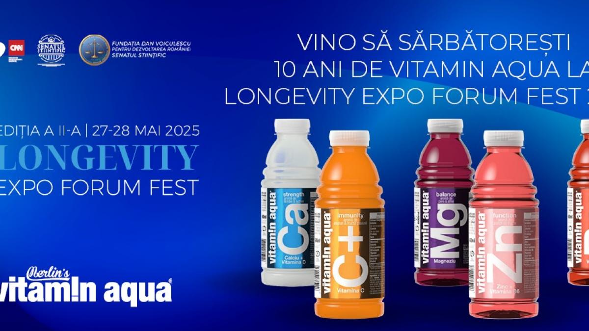 Lider pe piața apelor cu vitamine și a celor cu arome, vitamin aqua te invită să celebrezi un deceniu de hidratare activă și inovație la Longevity Expo Forum Fest 2025!