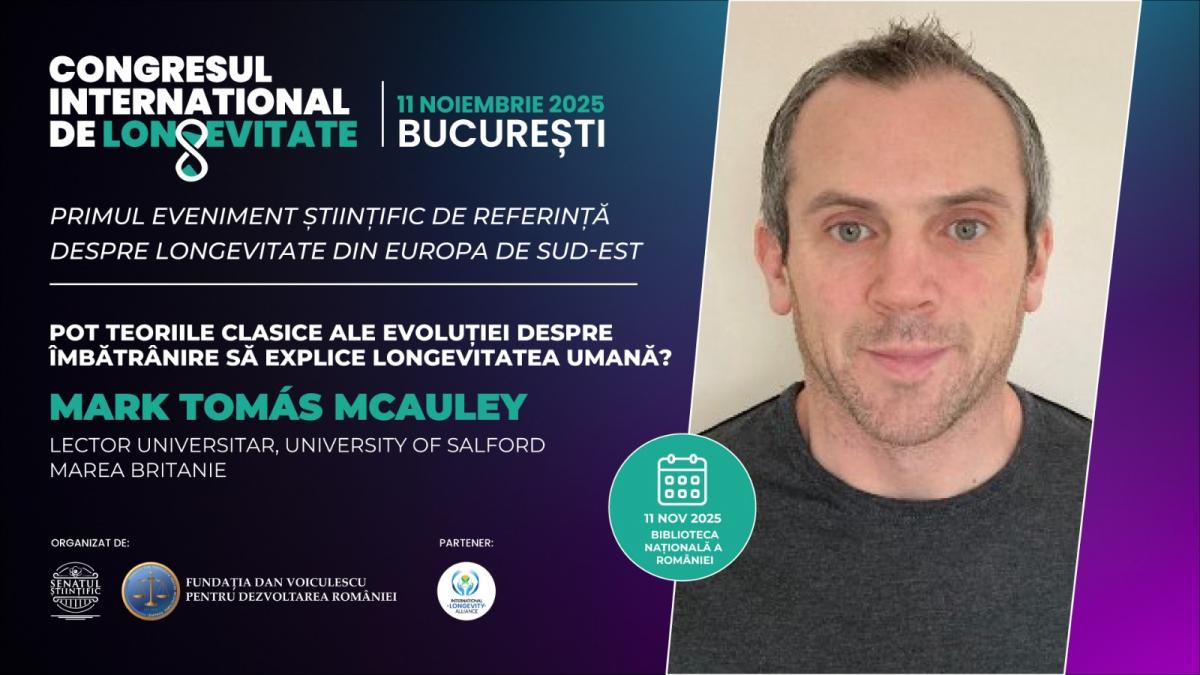 Pe 11 noiemebrie, Bucureștiul găzduiește Congresul Internațional de Longevitate, iar printre invitații care vor urca pe scenă se află Dr. Mark Tomás McAuley, lector universitar la University of Salford, biochimist nutrițional și expert în biologie computațională. Cercetarea sa pornește de la o întrebare fundamentală: dacă evoluția a modelat corpurile noastre timp de milioane de ani, atunci de ce îmbătrânim? Și, mai important, există strategii prin care putem încetini aceste mecanisme pentru a prelungi perioada vieții trăită sănătos? Congresul Internațional de Longevitate deschide Longevity Expo Forum Fest și aduce față în față cercetarea de frontieră și practica medicală, cu un obiectiv limpede: mai mulți ani trăiți în formă, nu doar mai mulți ani pe hârtie.