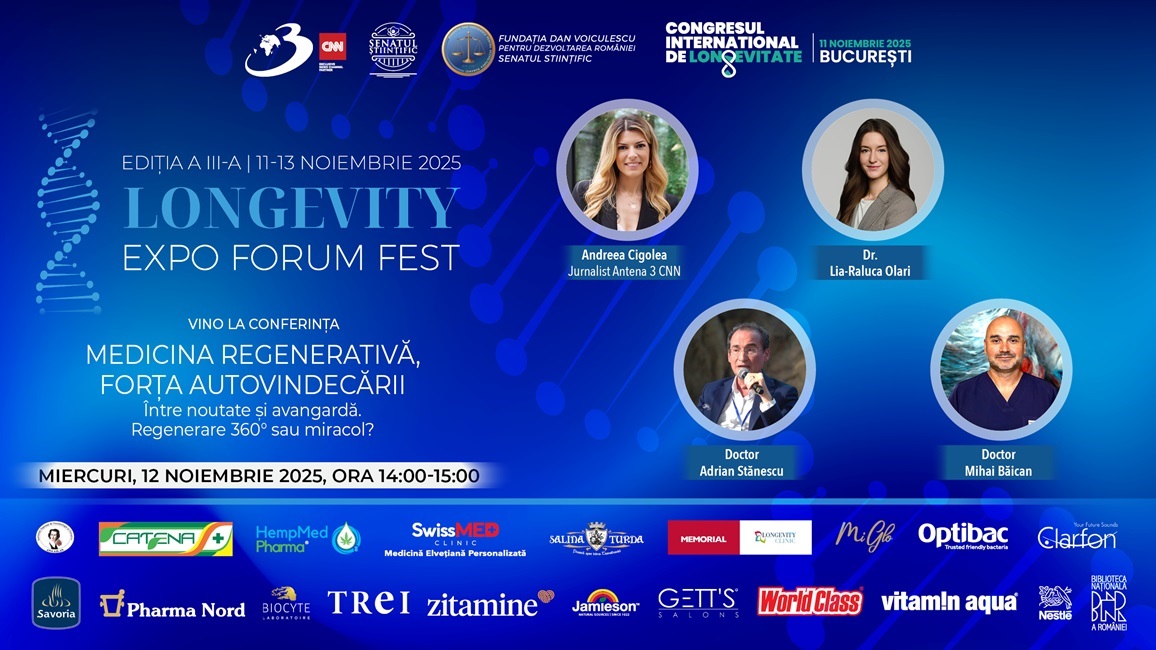 Conferința „Medicina regenerativă, forța autovindecării” oferă o perspectivă unică asupra modului în care medicina integrativă, cercetarea moleculară și terapiile complementare pot colabora pentru a sprijini capacitatea naturală a organismului de a se vindeca.